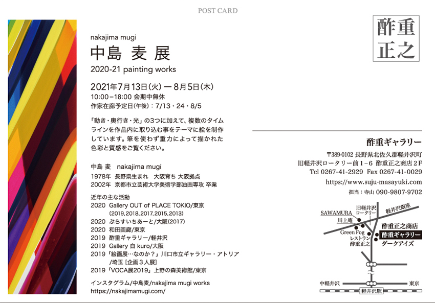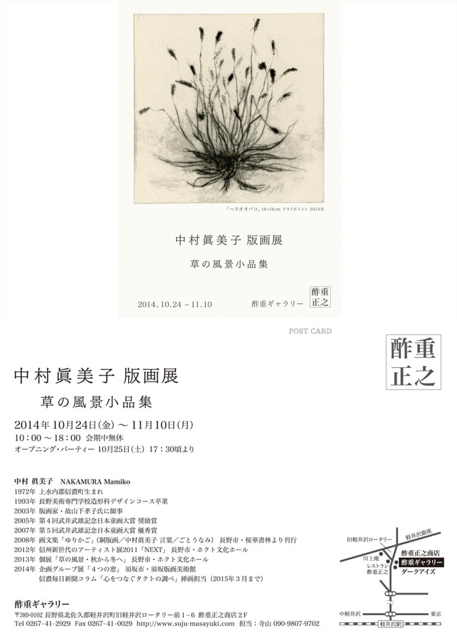 | 住 所 | 長野県北佐久郡軽井沢町軽井沢1-6 (軽井沢 旧軽ロータリー前 酢重正之商店2F) 【Google map】 2F 1-6 Karuizawa Karuizawa-machi Nagano-ken 0267-41-2828 |